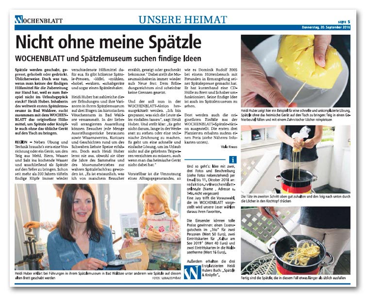 Die Suche nach der besten Spätzle-Idee im Wochenblatt am 18.10.2018.